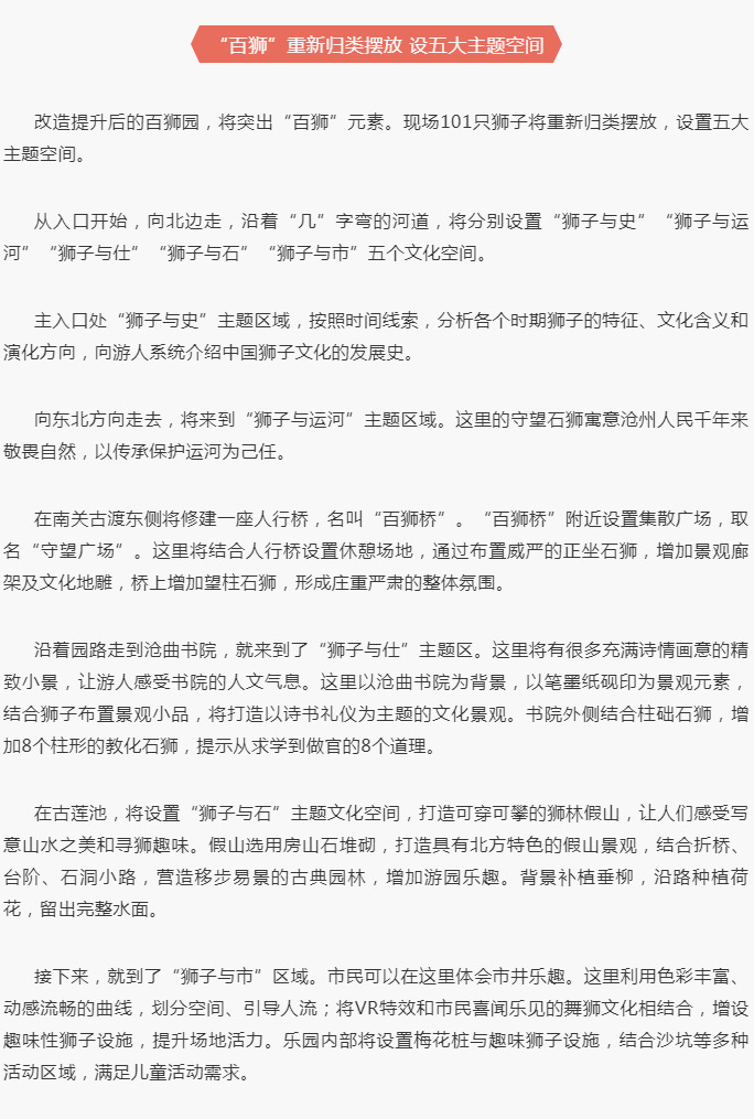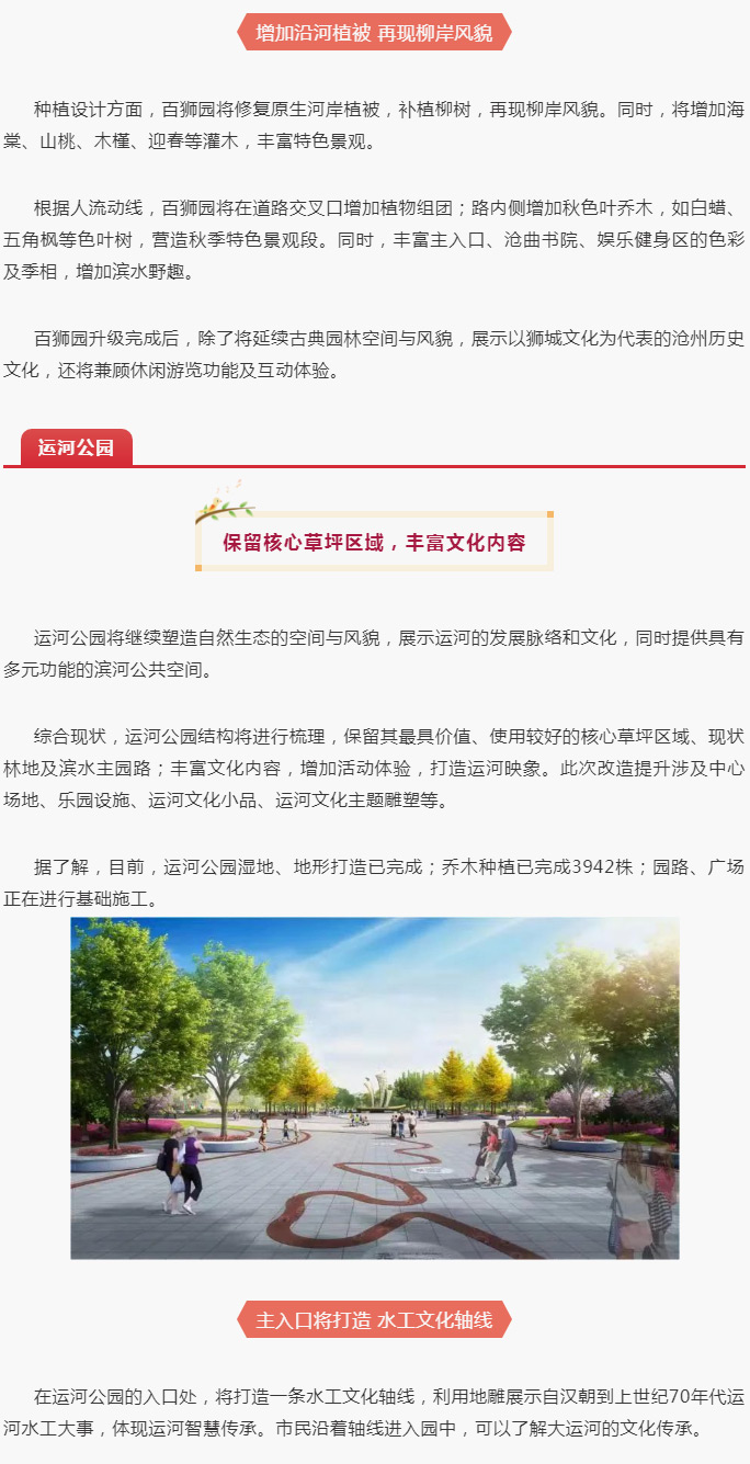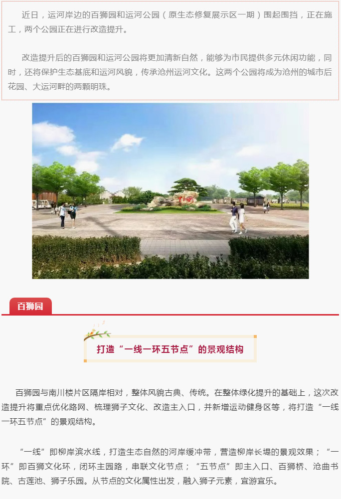 百獅園和運河公園改造提升,建成滄州城市后花園,打造運河畔兩顆明珠!