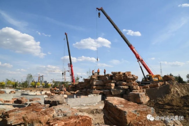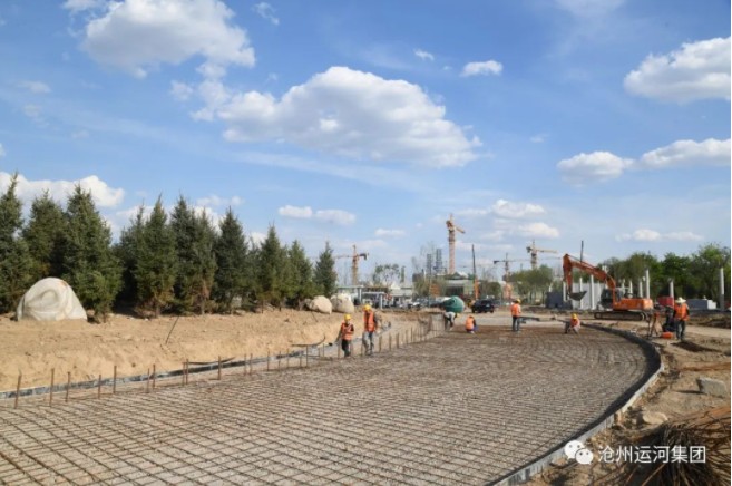 滄州園博園北起渤海東路、南至永濟路,西起運河西岸堤頂路、東至清池大道,占地面積4000畝,是河北省第六屆園林博覽會的召開地。忙碌的園博園建設現(xiàn)場,是項目各方時不我待、只爭朝夕、全力全速推進大運河文化帶建設的一個縮影。
