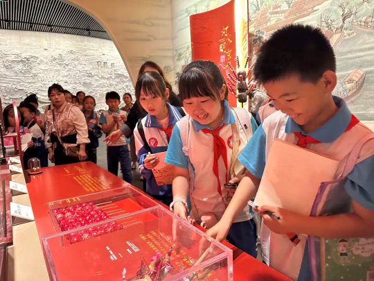 少先隊(duì)員們行走于八省展區(qū),震驚于古老建筑、藝術(shù)品和各種古老技藝的精湛。氣節(jié)之美、文房四寶、精品織造、木雕制作、繁榮文化等等,無(wú)不展示了非遺精粹,讓少先隊(duì)員們陶醉其中。