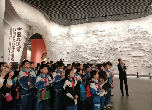 “大運(yùn)河是祖先留給我們的寶貴遺產(chǎn),是流動(dòng)的文化,要統(tǒng)籌保護(hù)好、傳承好、利用好?!睘樨瀼芈鋵?shí)總書(shū)記對(duì)建設(shè)大運(yùn)河文化帶以及宣傳大運(yùn)河文化帶思想的重要指示精神,充分挖掘大運(yùn)河豐富的歷史文化資源,引導(dǎo)少先隊(duì)員們更好地了解家鄉(xiāng)滄州,豐富“運(yùn)河娃”的精神文化內(nèi)涵,切身感受大運(yùn)河的璀璨文化和歷史記憶。4月23、24、26日三天,我校四年級(jí)全體師生及家長(zhǎng)代表600余人,開(kāi)展以“紅領(lǐng)巾相約大運(yùn)河 非遺書(shū)寫(xiě)'運(yùn)河記憶'”為主題的參觀大運(yùn)河非物質(zhì)文化遺產(chǎn)展示館研學(xué)活動(dòng)。在講解員的講解下,大家領(lǐng)略大運(yùn)河豐富歷史文化遺產(chǎn),感受運(yùn)河的多彩文化魅力。