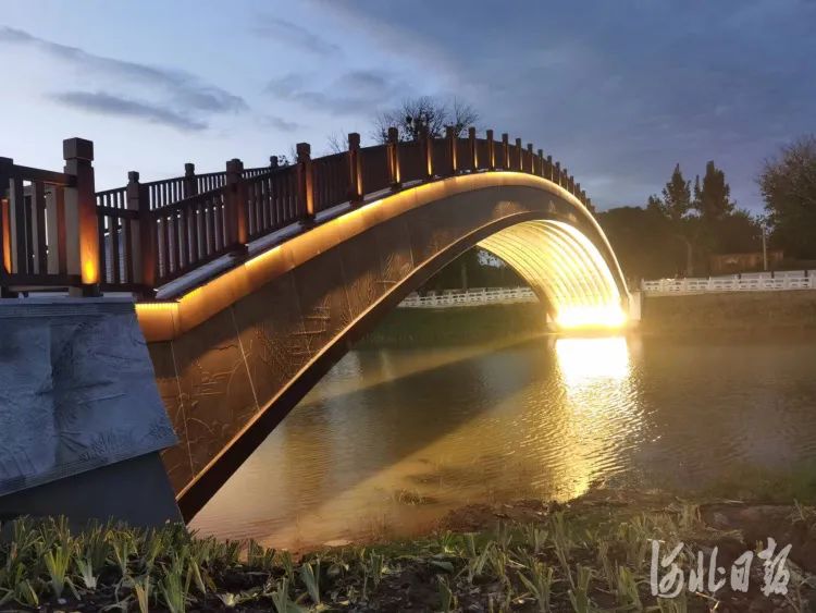 為實(shí)現(xiàn)大運(yùn)河滄州主城區(qū)段通航并達(dá)到相應(yīng)景觀效果,連通兩岸的步行橋設(shè)計(jì)成了拱形。河北日?qǐng)?bào)記者張嵐山攝