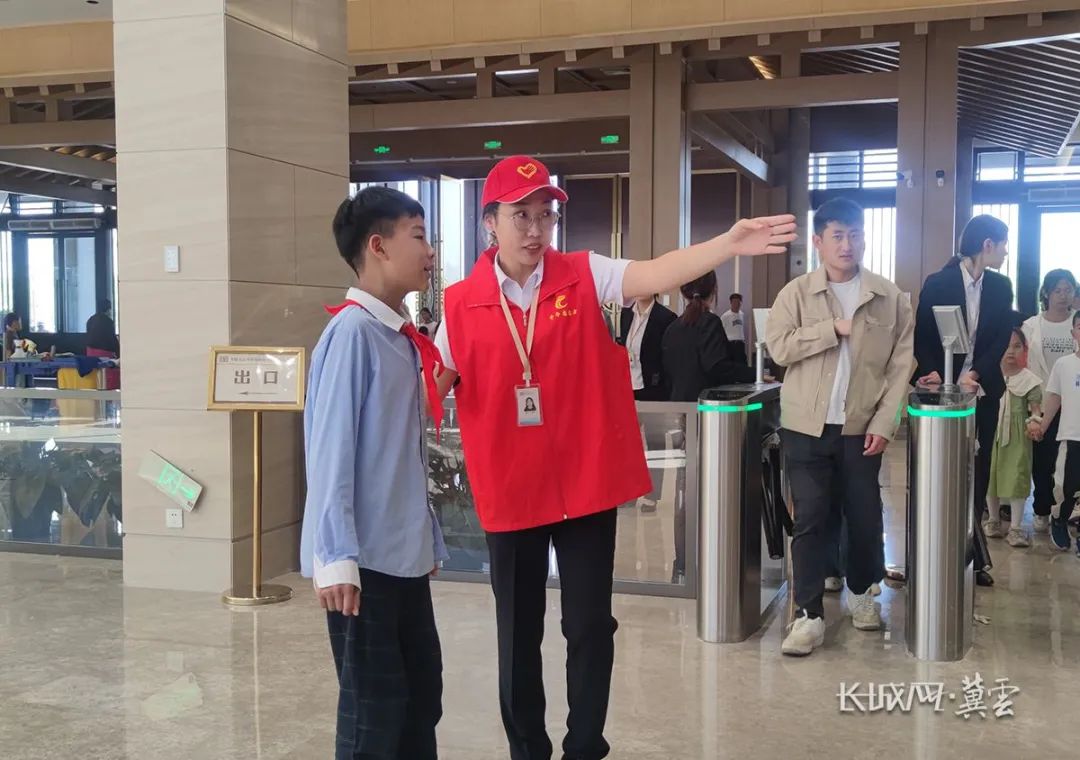 青年團員志愿者為游客指路。通訊員 于麗娟 攝