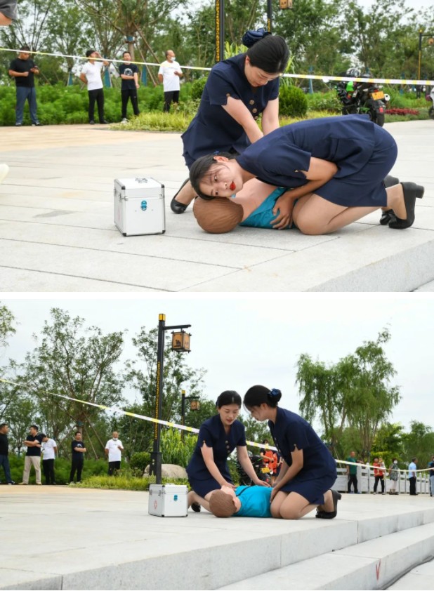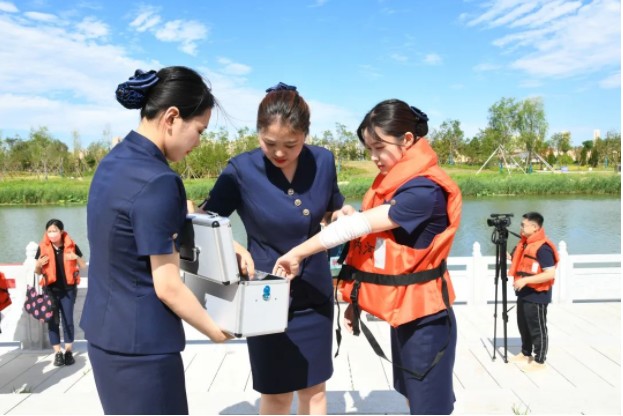 邀請了北京紅十字會金牌講師贏奧為青年志愿者及現(xiàn)場工作人員授課。通過講解、示范、互動相結合的方式,對旅游通航中突發(fā)狀況的處置方式進行了科學詳盡的講解。
