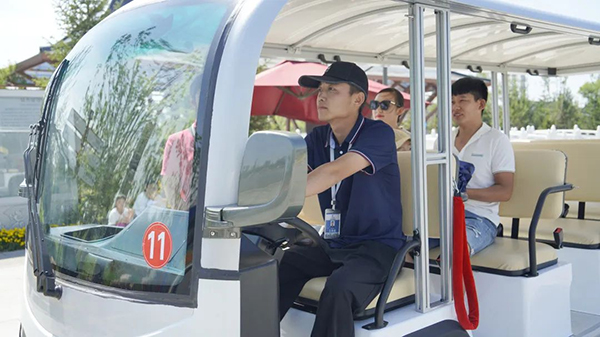 今年24歲的常慶偉是園博園內(nèi)的一名觀光車司機,他告訴記者,園區(qū)內(nèi)共有60輛觀光車,循環(huán)為游客服務(wù)。整個園區(qū)有70多名觀光車司機,車輛不停,司機輪換上崗。