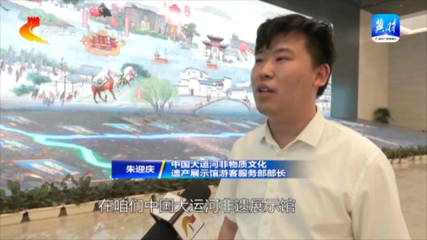 中國大運河非物質文化 遺產(chǎn)展示館游客服務部部長 朱迎慶:主要展示運河沿線八省市的非遺展品,還有非遺技藝,通過電子屏,可以看到運河沿線的運河走勢,兩岸的繁榮景貌,以及代表性的非遺項目,比如江蘇的紫砂壺制作、蘇繡、浙江的西泠印社。