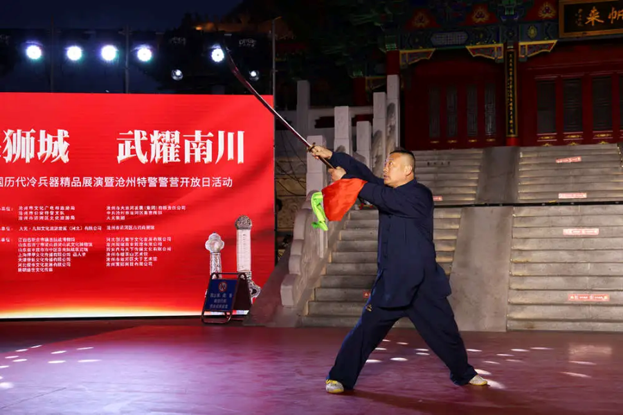 “五一”假期,武耀南川——2024全國歷代冷兵器精品展演暨滄州特警警營開放日活動在河北滄州南川樓舉行,游客在領(lǐng)略冷兵器之“冷”的同時共同見證滄州武術(shù)之“熱”。
