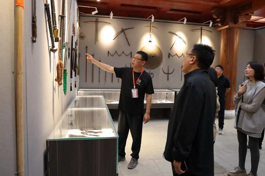 此次冷兵器展演自5月1日開始,為期一個月,共展出來自全國各地的冷兵器近200件,精彩講述文物背后的故事。展演期間,滄州武術(shù)愛好者現(xiàn)場進(jìn)行武術(shù)展演,游客在參觀展演的同時沉浸式感受兵器的魅力。