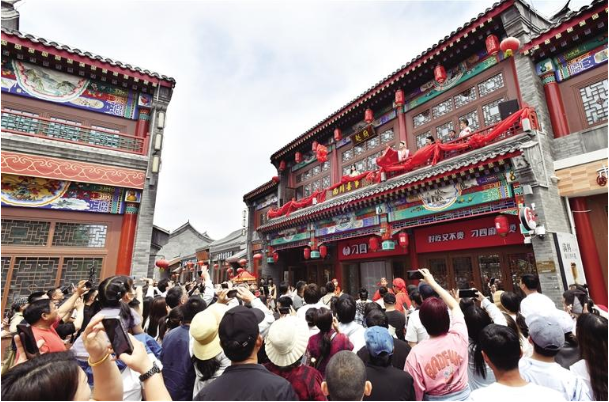 在風(fēng)景如畫(huà)的南川老街,“五一”假期,眾多游客來(lái)到這里看表演、品美食、拍寫(xiě)真、賞非遺,感受滄州獨(dú)特的運(yùn)河文化。在這里,有以南川老街為主題創(chuàng)造點(diǎn),展示繡球招親全過(guò)程的《南川喜事》情景劇演出;有包含樂(lè)器、舞蹈、走秀等節(jié)目的南川首屆少兒才藝匯演;有依托古風(fēng)建筑,網(wǎng)紅特色美食云集,舞美演藝不斷的古風(fēng)美食文化節(jié)……豐富多彩的文化活動(dòng),為游客帶來(lái)別樣的假日體驗(yàn)。