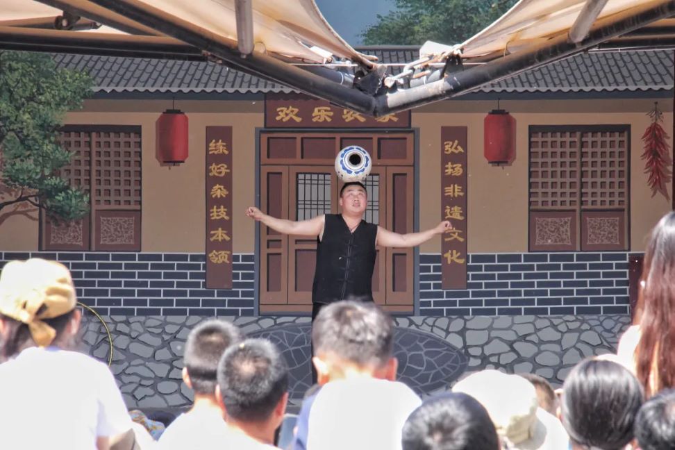 “坐進(jìn)大缸里,親身體驗(yàn)了一把蹬大缸,觀看了精彩的雜技節(jié)目,不虛此行?!?月2日,來(lái)自湖北的游客朱琳為優(yōu)秀的雜技文化連連點(diǎn)贊。