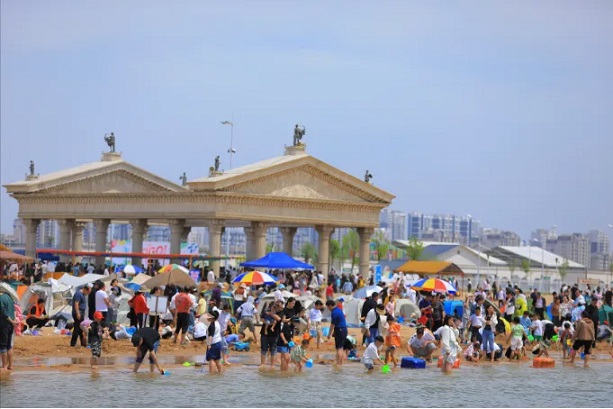 同樣位于渤海新區(qū)黃驊市的十里金沙灘,在“五一”前夕裝扮一新,開(kāi)園迎客。景區(qū)內(nèi)同時(shí)還舉辦了大型風(fēng)箏節(jié)、萌寵樂(lè)園、泰國(guó)風(fēng)情表演等活動(dòng),吸引了眾多游客前來(lái)“打卡”。假期前兩天,金沙灘景區(qū)就接待游客5.4萬(wàn)人次。
