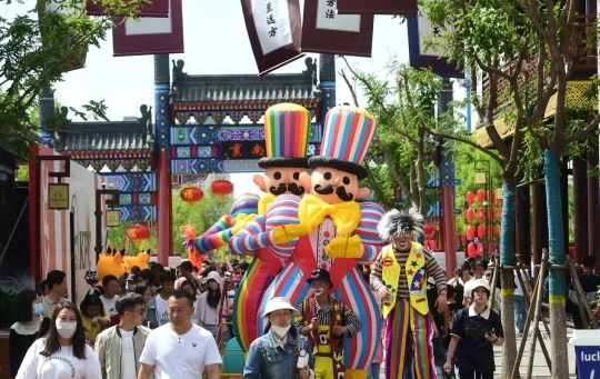 U型布局的商街通衢開闊,雜技雕塑、拴馬樁、鏢旗鏢箱等景觀小品隨處可見;明清風(fēng)格的建筑,處處飛檐斗拱、雕梁畫棟。漫步街區(qū),還能偶遇各類文藝表演和互動(dòng)巡游。今年“五一”剛開街的滄州坊,是大運(yùn)河畔的“新晉網(wǎng)紅”。