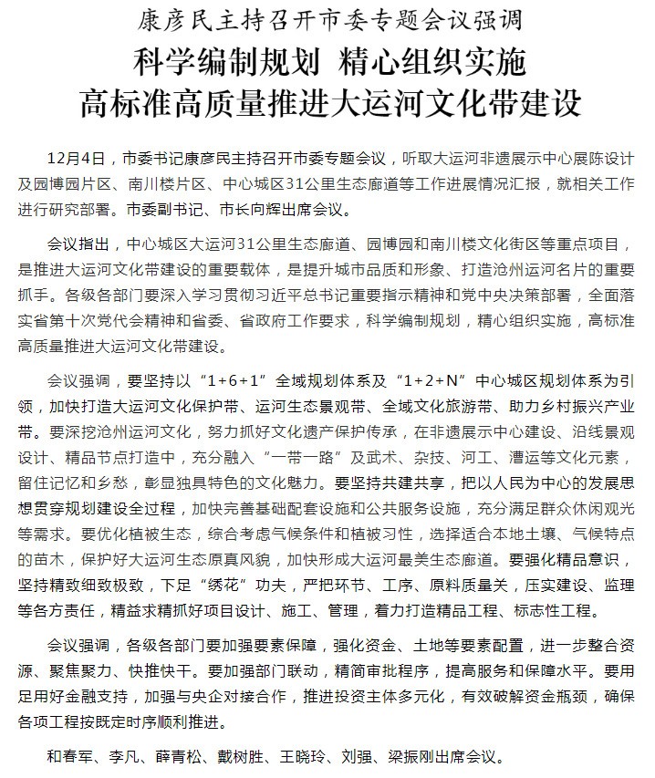 康彥民:科學(xué)編制規(guī)劃 精心組織實施 高標(biāo)準(zhǔn)高質(zhì)量推進大運河文化帶建設(shè)