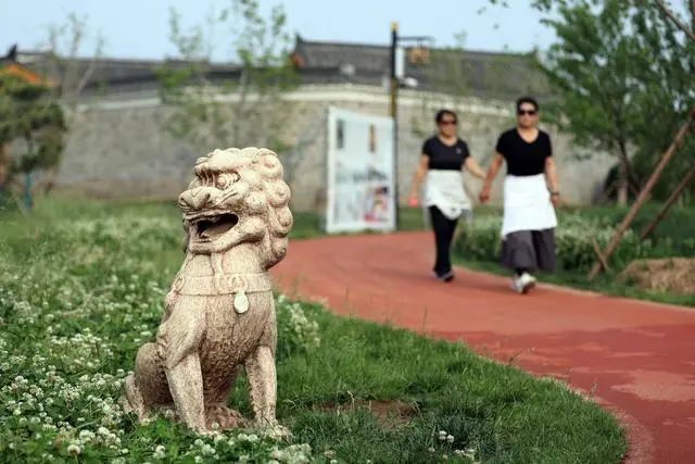 5月24日,市民在滄州市大運(yùn)河畔的百獅園南川古渡休閑游玩。新華社記者 駱學(xué)峰 攝