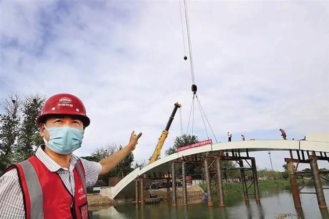 據(jù)悉,施工人員后續(xù)將開展橫縫、縱縫、橫隔板等部位焊接作業(yè),為橋梁附屬施工及地面道路施工爭取更多時(shí)間。這座橋作為連接百獅園公園與南川樓的重要人行景觀橋,確保了大運(yùn)河生態(tài)景觀一體化、連續(xù)化。