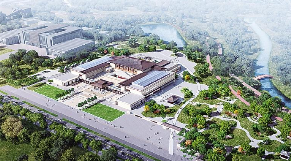 這個(gè)占地90畝、建筑面積達(dá)3.1萬(wàn)平方米的展示中心,大氣開(kāi)闊,以中軸線為中心、兩側(cè)對(duì)稱分布的格局,外觀和色調(diào)呈現(xiàn)濃濃的隋唐風(fēng)情。