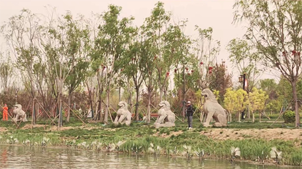 百獅園公園內(nèi)擺放了101尊形態(tài)各異的石獅子,或高大威武,或頑皮可愛,特別是沿岸的石獅,像是迎賓的“禮儀”獅,讓游客們嘖嘖稱奇。