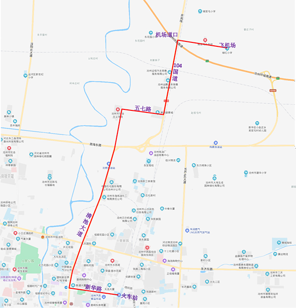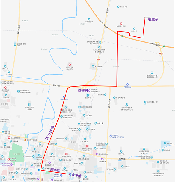 高鐵西站、滄興總部、宏宇大廈、傳媒大廈、十里香大廈、陶莊子、魏莊子、市政務(wù)服務(wù)中心北、滄州體育館、交通局、衡泰律師事務(wù)所、一世界·書香華府、市場監(jiān)督管理局、頤和文園、同天購物中心南門、市政府、河北銀行、滄州市人大、眼科醫(yī)院(中心醫(yī)院兒童院區(qū))、浮陽大道廣電小區(qū)、團結(jié)小區(qū)、公園西門、意明家興超市、愛齒口腔門診、發(fā)電廠、中國人保大廈、十五中學(xué)、開元花園、滄州大化集團公司、罐罐兒童樂園、大運河非遺展館、園博園二號門、滄州坊停車場、園博園一號門、園博園一號門停車場
