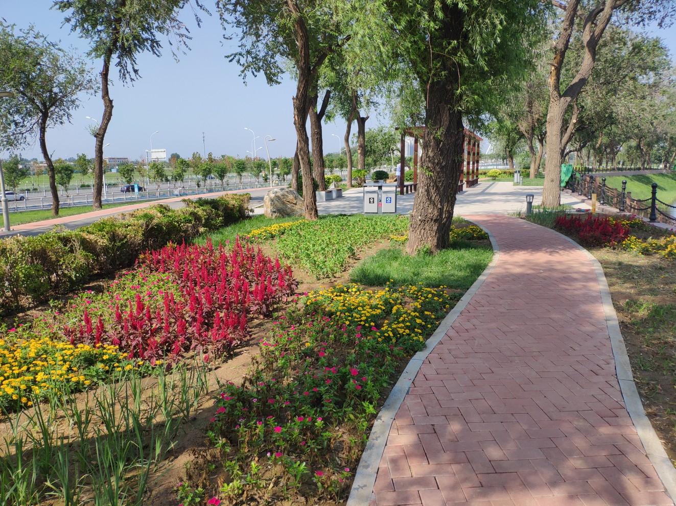 清池大道西側(cè)原王希魯引水閘泵房及周圍配套建筑拆除后,為了實現(xiàn)“即拆即綠”的效果,在該區(qū)域進行游園建設(shè)。游園總占地面積約6000平方米,主要建設(shè)內(nèi)容包括園路廣場、綠化種植、休閑設(shè)施、亮化工程等。為提高市民休閑游憩質(zhì)量,便于運河?xùn)|岸游人到達項目核心區(qū),按照市委市政府主要領(lǐng)導(dǎo)的要求,在清池大道西側(cè)游園設(shè)置一座臨時浮橋,浮橋全長60米,寬度4米。清池大道西側(cè)游園及臨時浮橋已于2019年8月建設(shè)完成并投入使用。